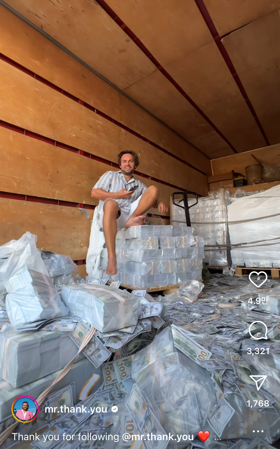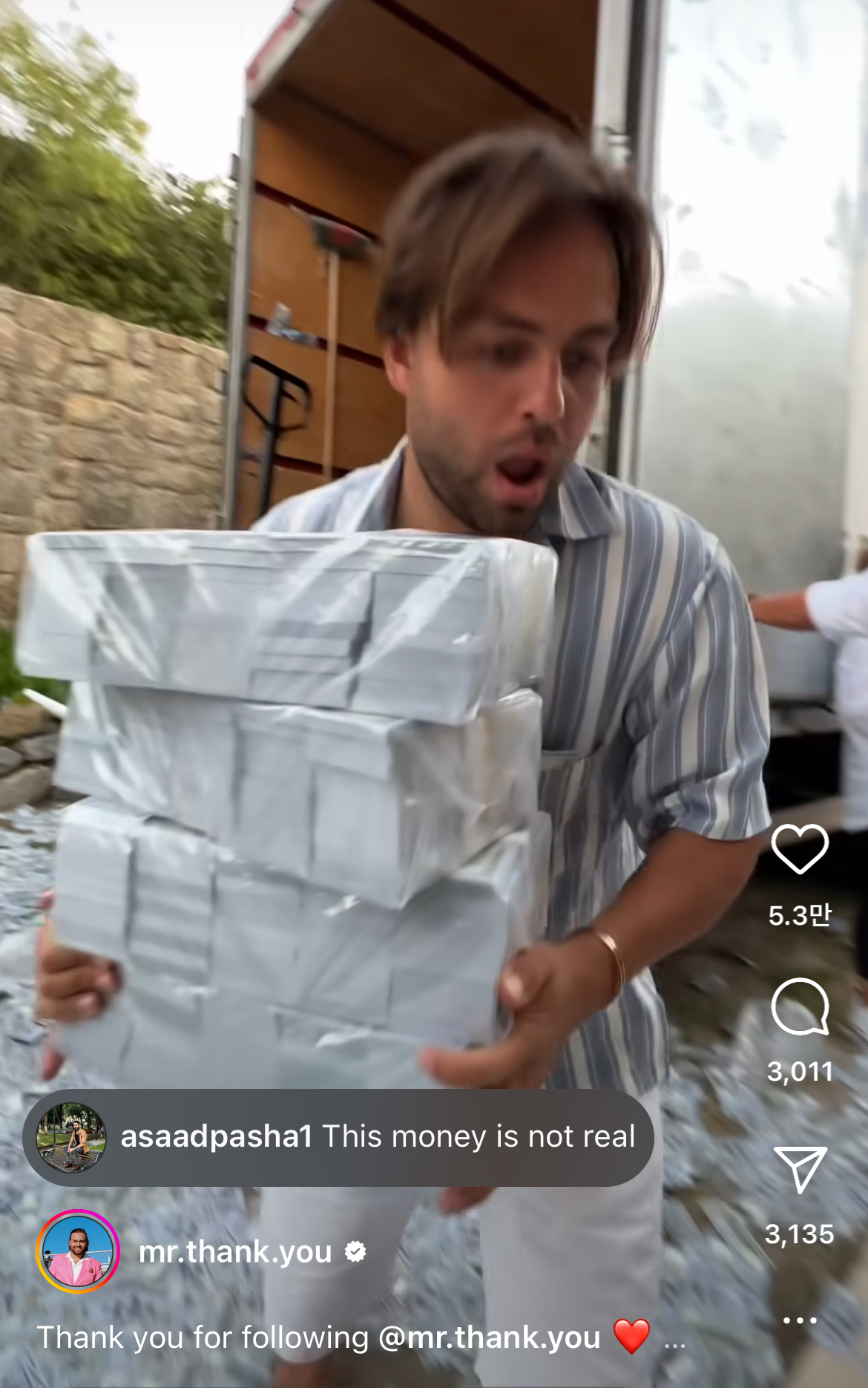 이영상을 보며 궁금해졌습니다. 이사람은 누구이고, 저것은 진짜 돈일까? 이런 영상은 실제 상황일까 연출일까 ?