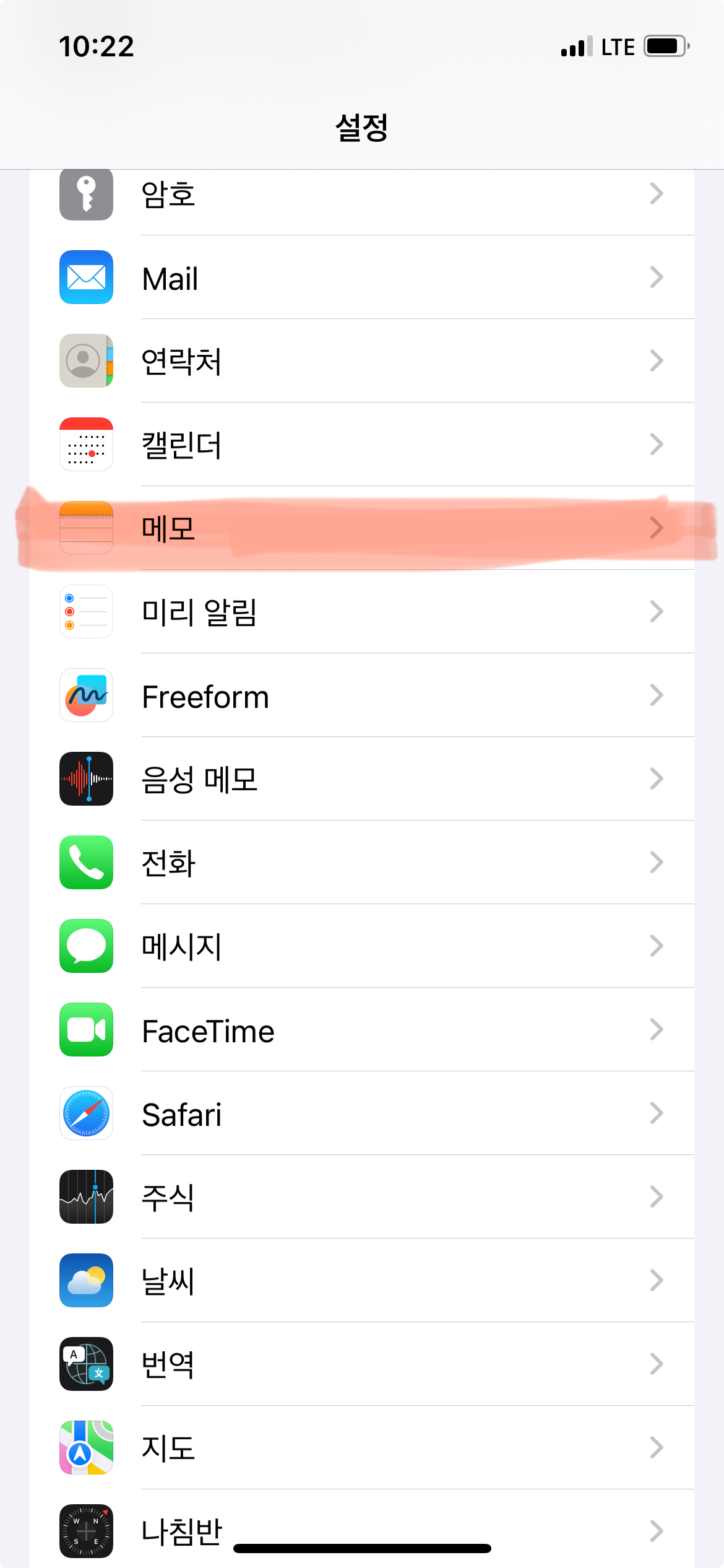 1. 아이폰 문서 스캔 후 자동으로 저장되도록 기본 설정이 필요해요. 설정 메뉴에서 '메모'앱을 찾아 실행 해주세요.