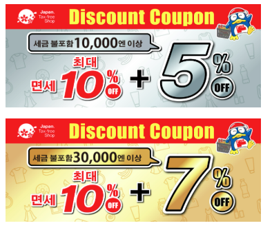 ※ 10,000엔 이상 구매쿠폰 : 면세 10% + 5%할인