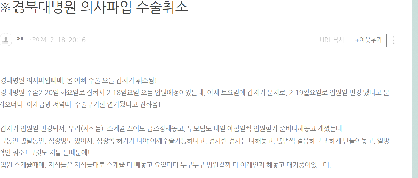 1. 전공의 파업 진짜 문제점 : 가족 중 한 명이 수술이 예정되어 있다.